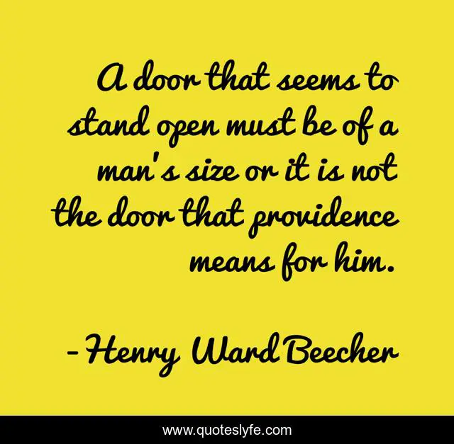 This page presents the quote "A door that seems to stand open must be of a man's size or it is not the door that providence means for him.". Author of this quote is Henry Ward Beecher. .