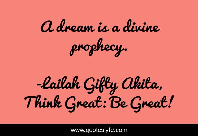 "Lailah Gifty Akita, Think Great: Be Great! Quotes." Quoteslyfe.com, 2025. Sat. 06 Dec. 2025. <https://www.quoteslyfe.com/quote/A-dream-is-a-divine-prophecy-62508>.