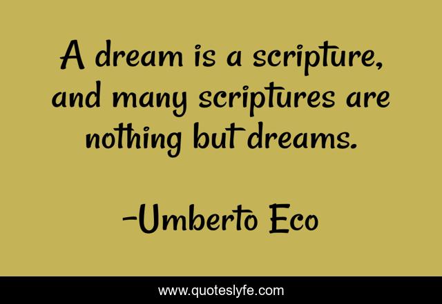 This page presents the quote "A dream is a scripture, and many scriptures are nothing but dreams.". Author of this quote is Umberto Eco. This quote is about nothing, many, dream,.