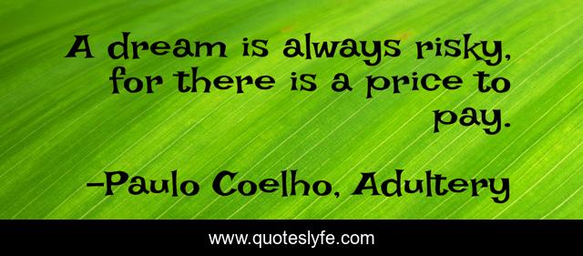This page presents the quote "A dream is always risky, for there is a price to pay.". Author of this quote is Paulo Coelho, Adultery. .