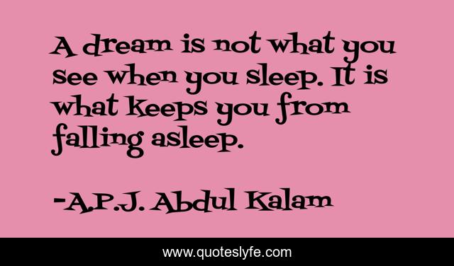 This page presents the quote "A dream is not what you see when you sleep. It is what keeps you from falling asleep.". Author of this quote is A.P.J. Abdul Kalam. This quote is about dream, sleep, ambition,.