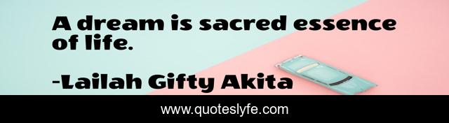 "Lailah Gifty Akita Quotes." Quoteslyfe.com, 2025. Sat. 06 Dec. 2025. <https://www.quoteslyfe.com/quote/A-dream-is-sacred-essence-of-life-53953>.