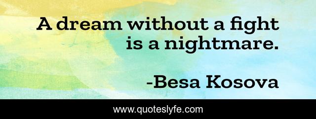 This page presents the quote "A dream without a fight is a nightmare.". Author of this quote is Besa Kosova. This quote is about enthusiasm, besa-kosova, dreams, inspirational,.