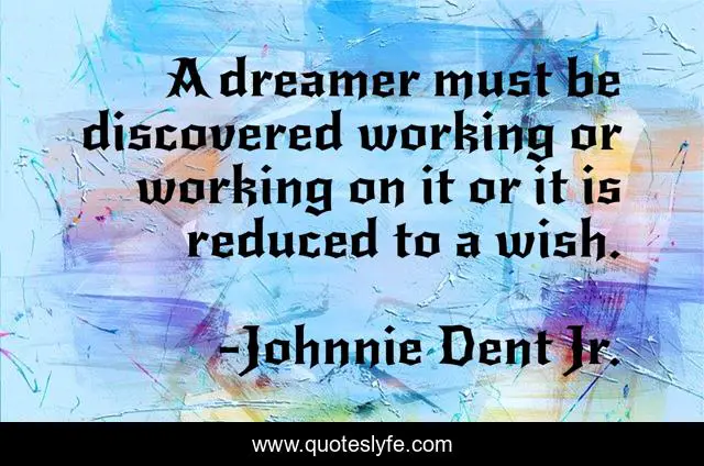 This page presents the quote "A dreamer must be discovered working or working on it or it is reduced to a wish.". Author of this quote is Johnnie Dent Jr.. This quote is about completion, complete, visionary, dream-big, dreams, dreamer,.