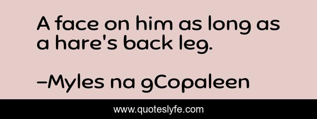 This page presents the quote "A face on him as long as a hare's back leg.". Author of this quote is Myles na gCopaleen. This quote is about long-face, hare, ireland, misery,.