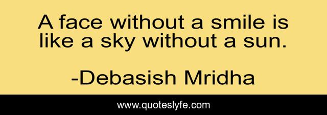 This page presents the quote "A face without a smile is like a sky without a sun.". Author of this quote is Debasish Mridha. This quote is about miraboli, power-of-a-smile, oscar-wilde, philosophy, debasish-mridha, tagore, quotes, buddha, gandhi,.