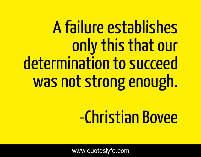 This page presents the quote "A failure establishes only this that our determination to succeed was not strong enough.". Author of this quote is Christian Bovee. This quote is about failures, mistakes,.