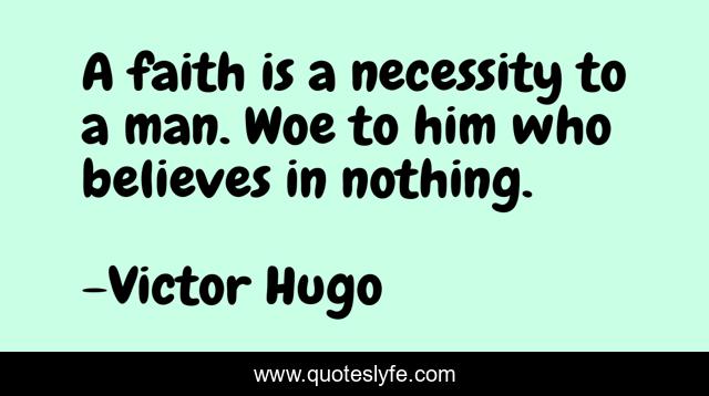 This page presents the quote "A faith is a necessity to a man. Woe to him who believes in nothing.". Author of this quote is Victor Hugo. This quote is about nothing, him, man,.