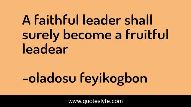 This page presents the quote "A faithful leader shall surely become a fruitful leadear". Author of this quote is oladosu feyikogbon. This quote is about culture, life, future, aspect, feyikogbon,.