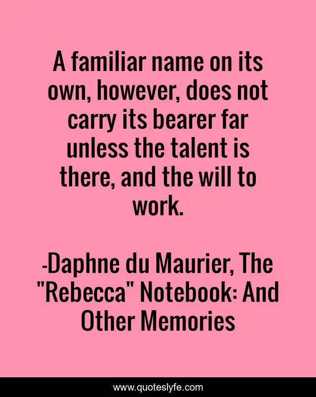 This page presents the quote "A familiar name on its own, however, does not carry its bearer far unless the talent is there, and the will to work.". Author of this quote is Daphne du Maurier, The "Rebecca" Notebook: And Other Memories. This quote is about famous, talent,.