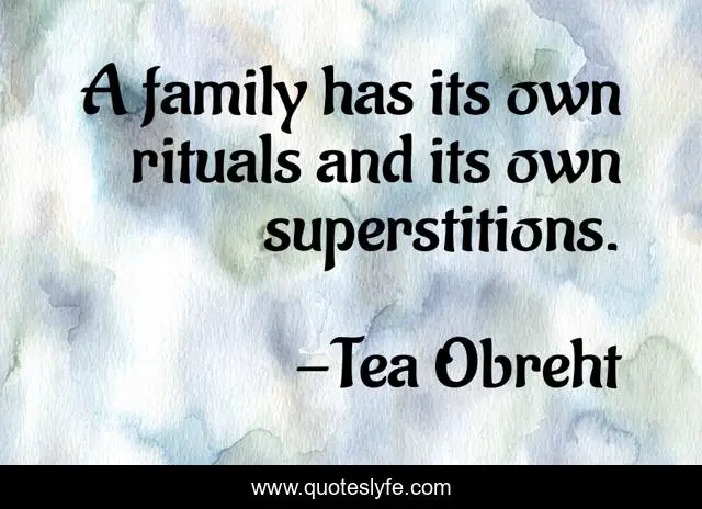 This page presents the quote "A family has its own rituals and its own superstitions.". Author of this quote is Tea Obreht. This quote is about rituals, own, superstitions,.