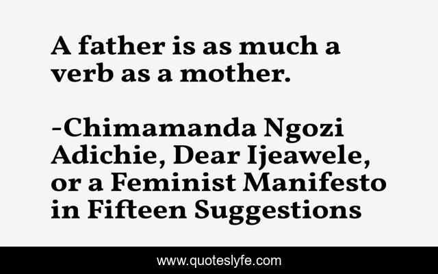 "Chimamanda Ngozi Adichie, Dear Ijeawele, or a Feminist Manifesto in Fifteen Suggestions Quotes." Quoteslyfe.com, 2025. Sat. 06 Dec. 2025. <https://www.quoteslyfe.com/quote/A-father-is-as-much-a-verb-166915>.