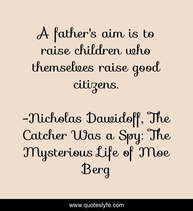 "Nicholas Dawidoff, The Catcher Was a Spy: The Mysterious Life of Moe Berg Quotes." Quoteslyfe.com, 2025. Mon. 08 Dec. 2025. <https://www.quoteslyfe.com/quote/A-father-s-aim-is-to-raise-219969>.