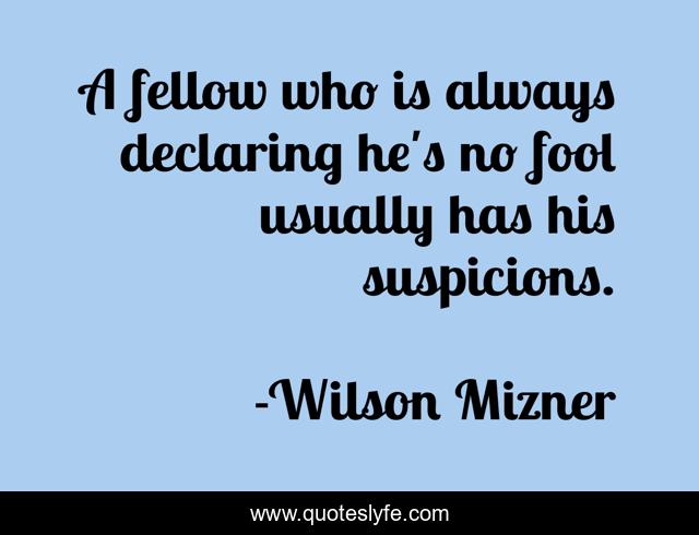 This page presents the quote "A fellow who is always declaring he's no fool usually has his suspicions.". Author of this quote is Wilson Mizner. This quote is about fools, foolishness,.