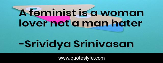 This page presents the quote "A feminist is a woman lover not a man hater". Author of this quote is Srividya Srinivasan. .