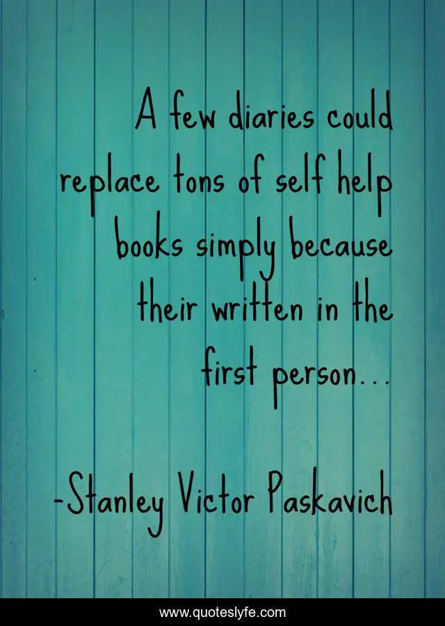 This page presents the quote "A few diaries could replace tons of self help books simply because their written in the first person...". Author of this quote is Stanley Victor Paskavich. .