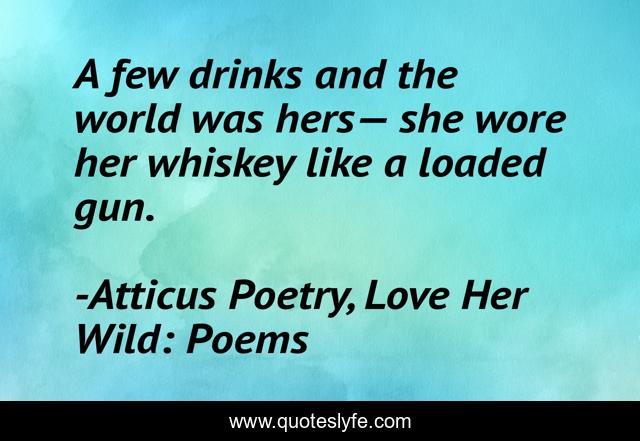 This page presents the quote "A few drinks and the world was hers— she wore her whiskey like a loaded gun.". Author of this quote is Atticus Poetry, Love Her Wild: Poems. This quote is about atticus, love, instagram, her, atticuspoetry, poetry, quotes, wild, poems,.