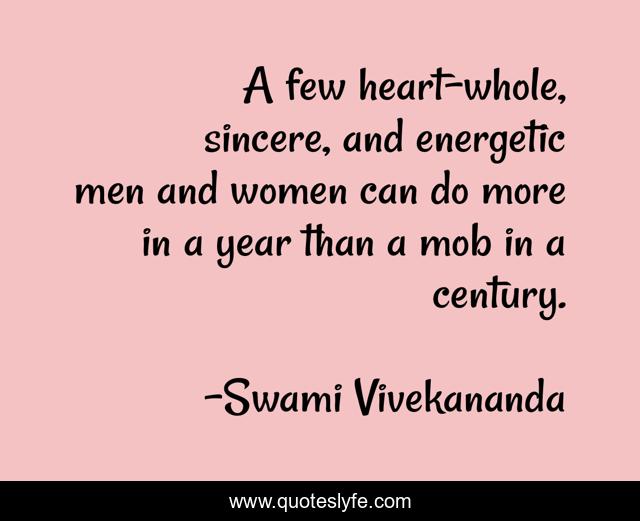 This page presents the quote "A few heart-whole, sincere, and energetic men and women can do more in a year than a mob in a century.". Author of this quote is Swami Vivekananda. .