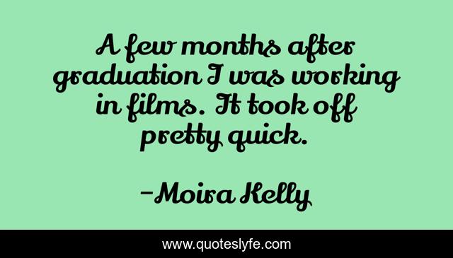 This page presents the quote "A few months after graduation I was working in films. It took off pretty quick.". Author of this quote is Moira Kelly. This quote is about quick, working, pretty,.