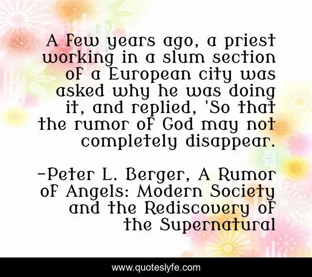 "Peter L. Berger, A Rumor of Angels: Modern Society and the Rediscovery of the Supernatural Quotes." Quoteslyfe.com, 2025. Sun. 07 Dec. 2025. <https://www.quoteslyfe.com/quote/A-few-years-ago-a-priest-working-176039>.