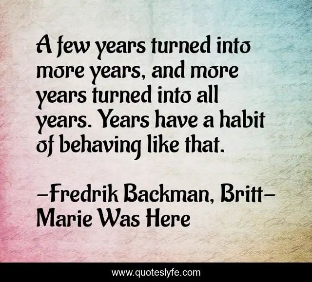 This page presents the quote "A few years turned into more years, and more years turned into all years. Years have a habit of behaving like that.". Author of this quote is Fredrik Backman, Britt-Marie Was Here. This quote is about aging, time, habit, years,.