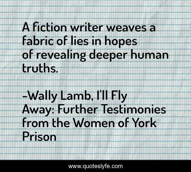 "Wally Lamb, I'll Fly Away: Further Testimonies from the Women of York Prison Quotes." Quoteslyfe.com, 2025. Sat. 06 Dec. 2025. <https://www.quoteslyfe.com/quote/A-fiction-writer-weaves-a-fabric-of-219336>.