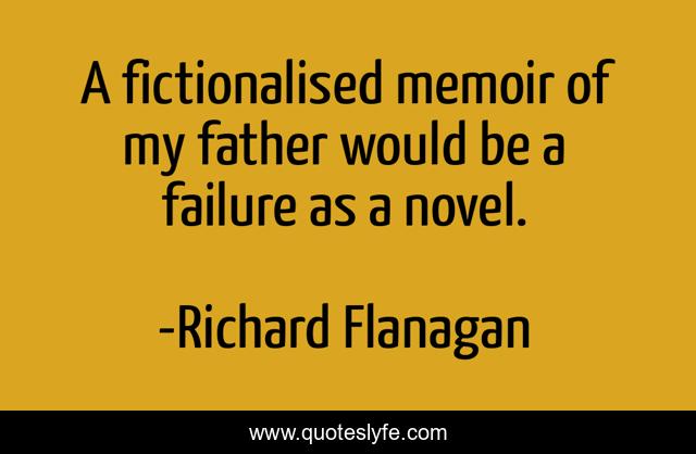 This page presents the quote "A fictionalised memoir of my father would be a failure as a novel.". Author of this quote is Richard Flanagan. This quote is about novel, father, memoir,.