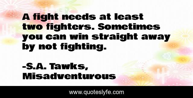 "S.A. Tawks, Misadventurous Quotes." Quoteslyfe.com, 2025. Fri. 05 Dec. 2025. <https://www.quoteslyfe.com/quote/A-fight-needs-at-least-two-fighters-147208>.