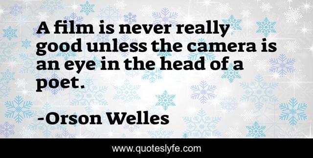 This page presents the quote "A film is never really good unless the camera is an eye in the head of a poet.". Author of this quote is Orson Welles. This quote is about acting, theatre,.