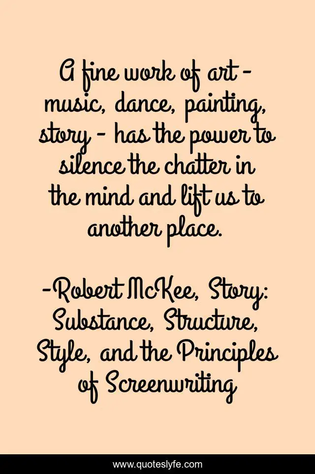 "Robert McKee, Story: Substance, Structure, Style, and the Principles of Screenwriting Quotes." Quoteslyfe.com, 2025. Tue. 09 Dec. 2025. <https://www.quoteslyfe.com/quote/A-fine-work-of-art-music-dance-65407>.