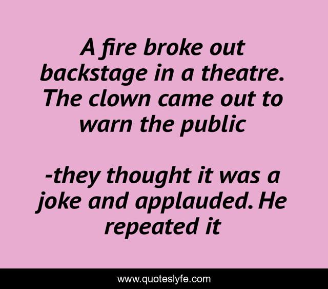 This page presents the quote "A fire broke out backstage in a theatre. The clown came out to warn the public". Author of this quote is they thought it was a joke and applauded. He repeated it. .