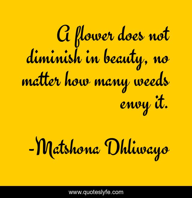 "Matshona Dhliwayo Quotes." Quoteslyfe.com, 2025. Fri. 05 Dec. 2025. <https://www.quoteslyfe.com/quote/A-flower-does-not-diminish-in-beauty-57757>.