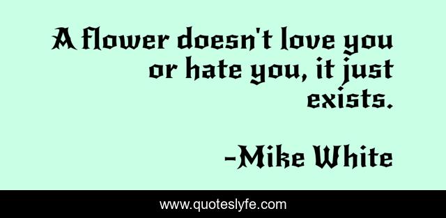 This page presents the quote "A flower doesn't love you or hate you, it just exists.". Author of this quote is Mike White. This quote is about flower, hate,.