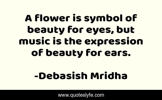 This page presents the quote "A flower is symbol of beauty for eyes, but music is the expression of beauty for ears.". Author of this quote is Debasish Mridha. This quote is about life, love, knowledge, inspirational, intelligence, philosophy, wisdom, quotes, affection,.
