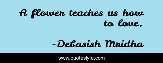 This page presents the quote "A flower teaches us how to love.". Author of this quote is Debasish Mridha. This quote is about teaches-us-how-to-love, philosophy, debasish-mridha, quotes, inspirational, enthusiasm, how-to-leave, flowers, debasish-mridha-m-d,.