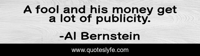 This page presents the quote "A fool and his money get a lot of publicity.". Author of this quote is Al Bernstein. This quote is about fool, publicity, lot,.