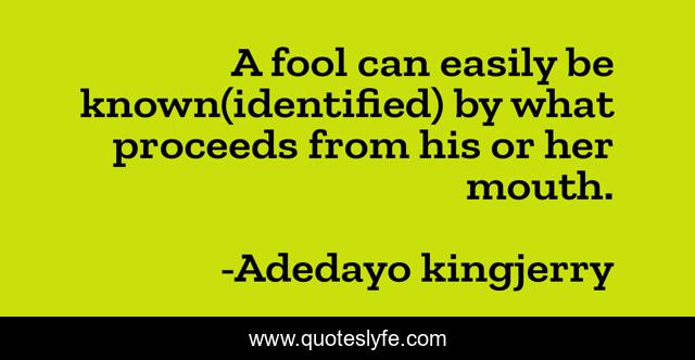 "Adedayo kingjerry Quotes." Quoteslyfe.com, 2025. Sun. 07 Dec. 2025. <https://www.quoteslyfe.com/quote/A-fool-can-easily-be-known-identified-13051>.