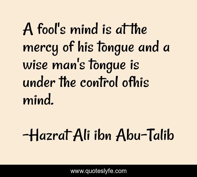 This page presents the quote "A fool's mind is at the mercy of his tongue and a wise man's tongue is under the control ofhis mind.". Author of this quote is Hazrat Ali ibn Abu-Talib. This quote is about enthusiasm, inspirational,.