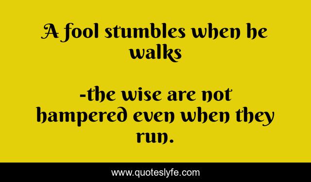 "the wise are not hampered even when they run. Quotes." Quoteslyfe.com, 2025. Fri. 05 Dec. 2025. <https://www.quoteslyfe.com/quote/A-fool-stumbles-when-he-walks-207553>.