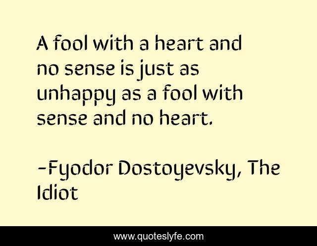 "Fyodor Dostoyevsky, The Idiot Quotes." Quoteslyfe.com, 2025. Fri. 05 Dec. 2025. <https://www.quoteslyfe.com/quote/A-fool-with-a-heart-and-no-80517>.