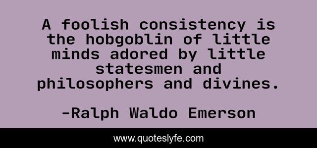 "Ralph Waldo Emerson Quotes." Quoteslyfe.com, 2025. Sat. 06 Dec. 2025. <https://www.quoteslyfe.com/quote/A-foolish-consistency-is-the-hobgoblin-of-262067>.