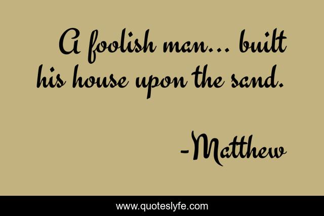 "Matthew Quotes." Quoteslyfe.com, 2025. Mon. 08 Dec. 2025. <https://www.quoteslyfe.com/quote/A-foolish-man-built-his-house-upon-268624>.