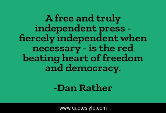 This page presents the quote "A free and truly independent press - fiercely independent when necessary - is the red beating heart of freedom and democracy.". Author of this quote is Dan Rather. This quote is about freedom, red, heart,.