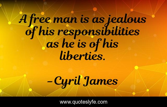 This page presents the quote "A free man is as jealous of his responsibilities as he is of his liberties.". Author of this quote is Cyril James. This quote is about liberty, human, rights,.