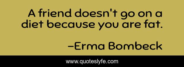 This page presents the quote "A friend doesn't go on a diet because you are fat.". Author of this quote is Erma Bombeck. This quote is about funny, comedy, friendship,.