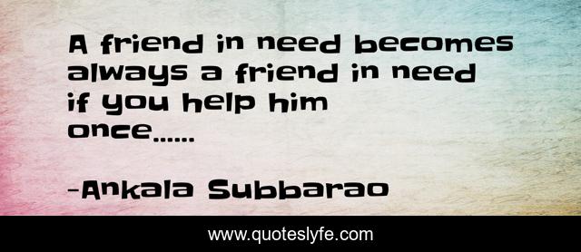 This page presents the quote "A friend in need becomes always a friend in need if you help him once......". Author of this quote is Ankala Subbarao. This quote is about need, indeed, friend,.