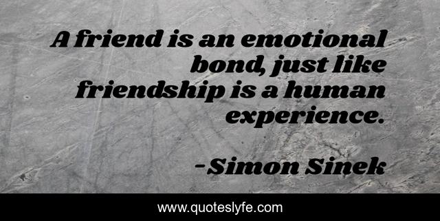 This page presents the quote "A friend is an emotional bond, just like friendship is a human experience.". Author of this quote is Simon Sinek. This quote is about friendship, friend,.