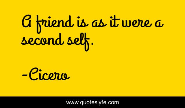 This page presents the quote "A friend is as it were a second self.". Author of this quote is Cicero. .