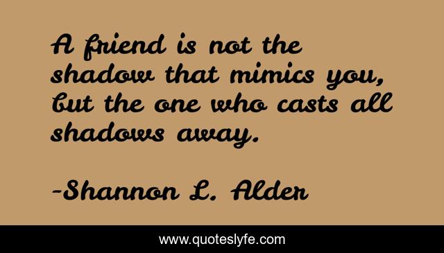 This page presents the quote "A friend is not the shadow that mimics you, but the one who casts all shadows away.". Author of this quote is Shannon L. Alder. This quote is about shadows, kindness, compassionate, givers, helpful, compassion, leading-by-example, patience, affection,.