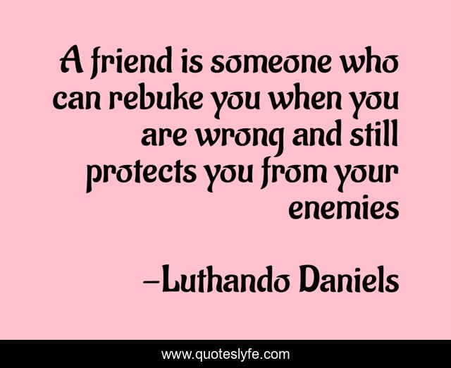This page presents the quote "A friend is someone who can rebuke you when you are wrong and still protects you from your enemies". Author of this quote is Luthando Daniels. This quote is about friendship, relationship,.